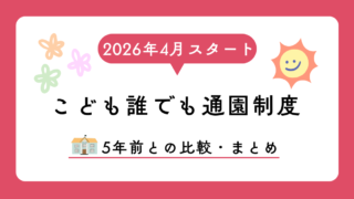専業主婦でも保育園が使える「こども誰でも通園制度」が2026年4月にスタート!5年前の一時預かりと徹底比較。予約の取りにくさ・料金・手続きの違いをリアルな体験談とともに解説します。